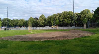 Tiny Forest Pflanzaktion Bertramswiese 22.11.2025 - vorher (Mai 2025) und nachher (November 2025)