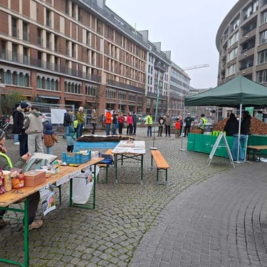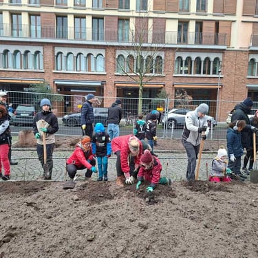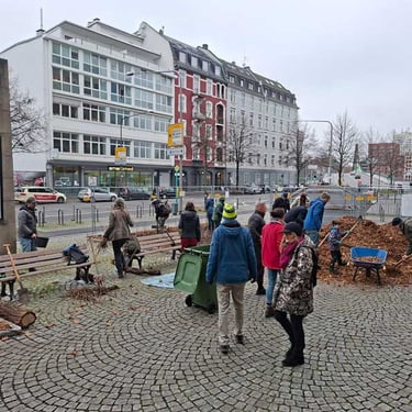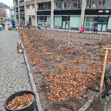 Am 13.12.2025 war es soweit: dank der guten Zusammenarbeit zwischen dem Grünflächenamt, dem Amt für Straßenbau und Erschließung und unserer Initiative MainWäldchen wurden auf dem Walther-von-Cronberg Platz ca. 350 m² Fläche entsiegelt und mehrere Miniwälder angelegt. Mit der tatkräftigen Unterstützung von vielen großen und kleinen Helfer*innen - darunter viele Familien - wurden über 1.000 heimische Bäume und Sträucher gepflanzt. Damit wurden zum ersten Mal auf einem großen Stadtplatz in Frankfurt Flächen entsiegelt und mit Tiny Forests bepflanzt!
