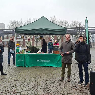Wir haben uns sehr gefreut, dass auch Vertreter*innen der beteiligten Ämter und zwei Dezernent*innen bei der Aktion dabei waren. Die Dezernentin für Klima, Umwelt und Frauen Tina Zapf-Rodríguez sagte in ihrer Rede zu Beginn der Pflanzaktion: "Innerhalb weniger Wochen nach der gelungenen Pflanzaktion an der Bertramswiese entsteht mitten im dichtbesiedelten städtischen Raum Frankfurts etwas Großes: ein Stück Klima-Gerechtigkeit für ein heißes Quartier. Tiny Forests beweisen, dass jede noch so kleine Fläche zählt, wenn wir Frankfurt zu einer Stadt machen wollen, in der Menschen gesund bleiben und sich wohlfühlen“.