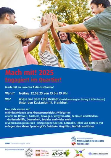 Wo? Auf der Wiese vor dem Café Heimat (Sozialberatung im Dialog & NOG Praxen), Unter den Kastanien 14, 60596 Frankfurt