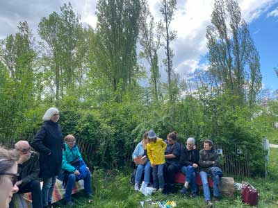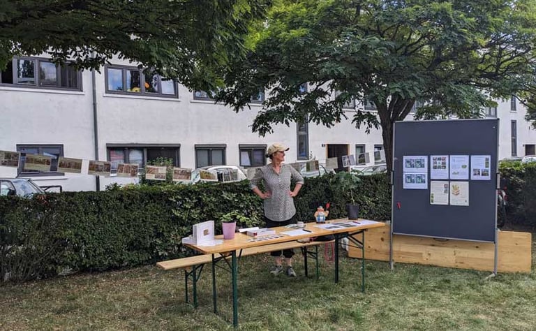 Es gab auch Gelegenheit, Fragen zu stellen und sich mit uns und anderen auszutauschen. Eingeladen waren alle Interessierten, Anwohner*innen aus der Nachbarschaft, der Ortsbeirat, Initiativen, die Presse, usw. kurz: alle, die sich für Stadtnatur und diese besondere Methode interessieren!